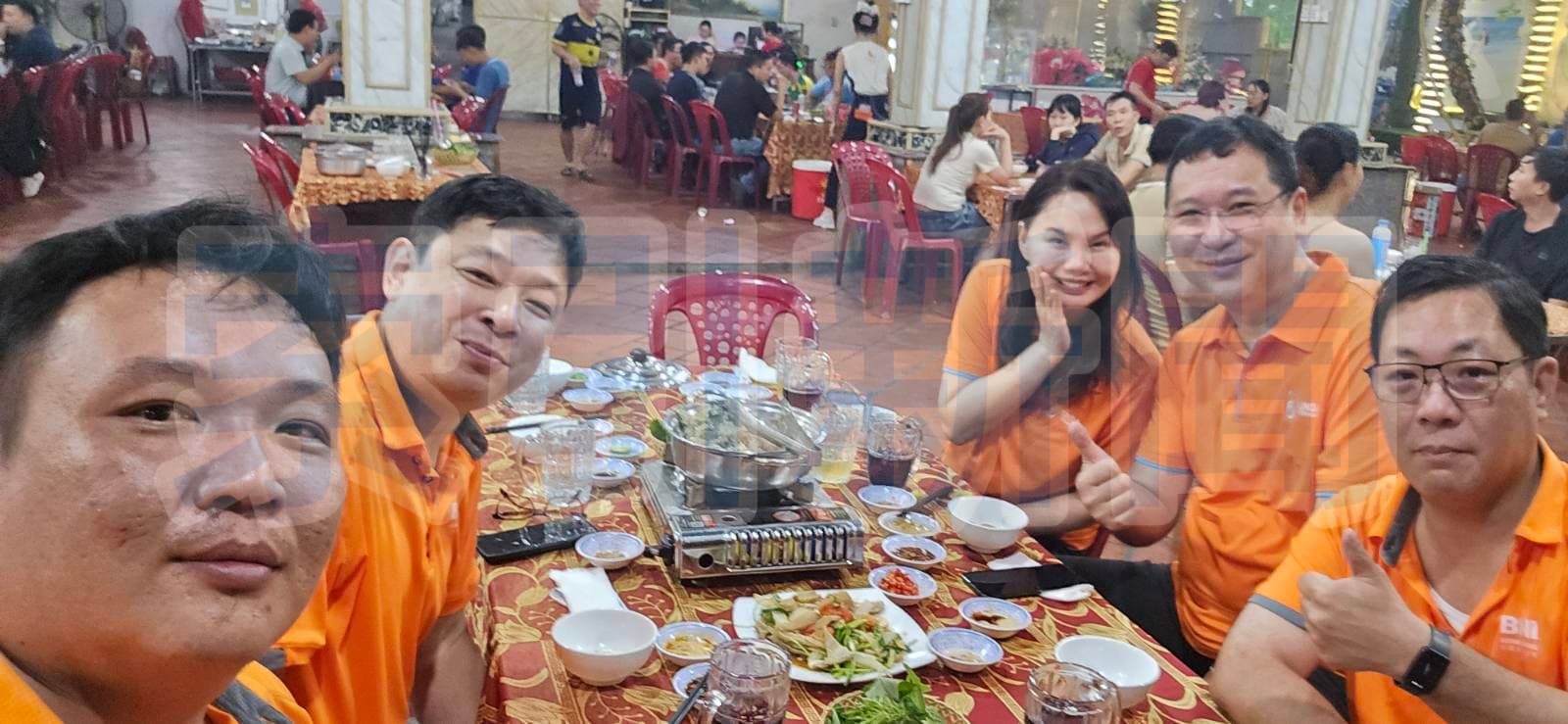 2025年12月4日晚間,越南胡志明市平陽坊一間在地餐館內燈火通明,長桌上火鍋熱氣升騰,橘色制服成員圍桌而坐、舉杯致意。這場由越南全富佳國際旅行社總經理彭兆源安排的餐敘,為期三天兩夜的台越交流行程揭開序幕,亦是接待遠自台灣而來商務夥伴的第一個正式聚會。