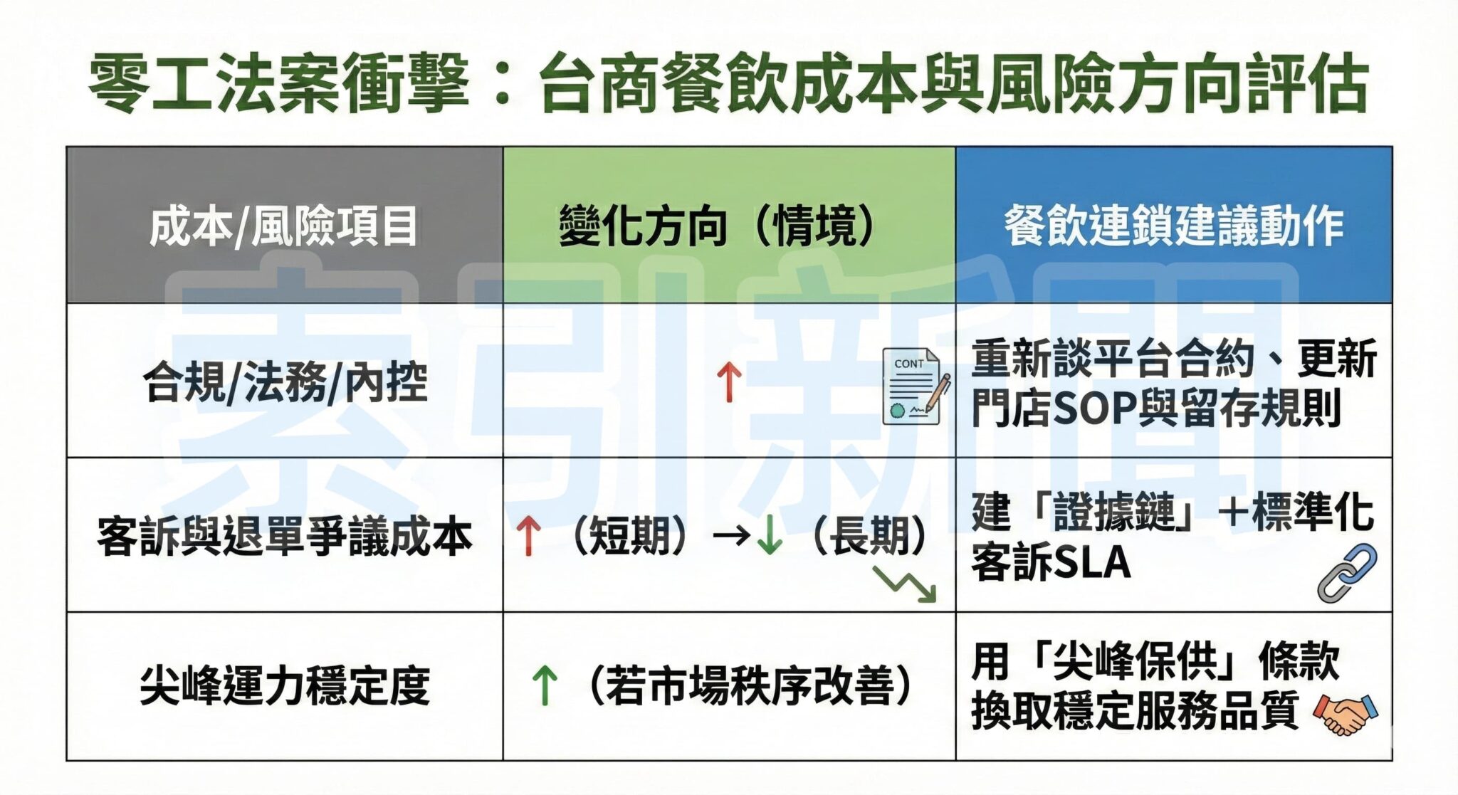 - 台商餐飲短期優先:把外送平台合約與門店SOP做一次「可被稽核」的改版